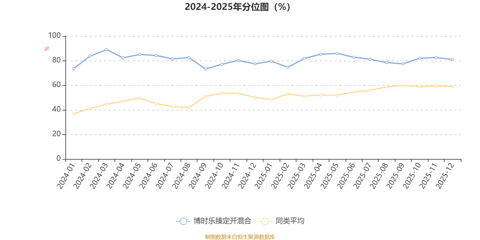 通过所选区间该基金净值增长率分位图,可以观察该基金与同类基金业绩比较情况。图为坐标原点到区间内某时点的净值增长率在同类基金中的分位数。