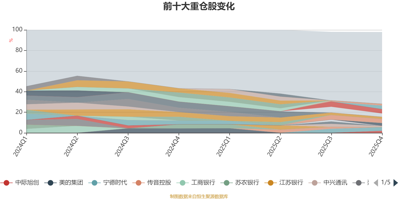 截至2025年四季度末,基金十大重仓股分别是中天科技、立讯精密、宁德时代、瀚蓝环境、阿里巴巴-W、紫金矿业、分众传媒、中际旭创、中国平安、中兴通讯。