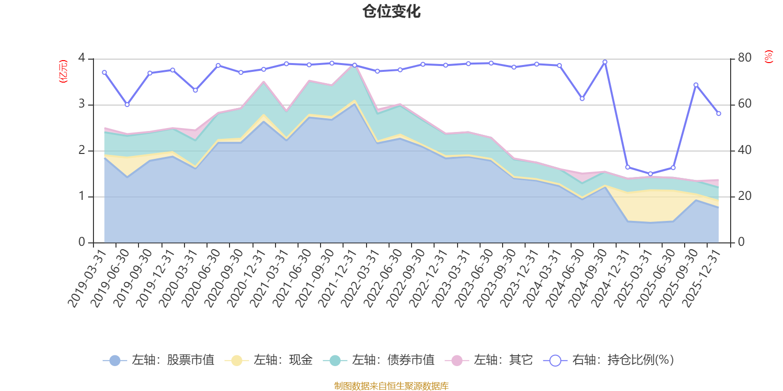据定期报告数据统计,近三年平均股票仓位为62.35%,同类平均为72.57%。2024年三季度末基金达到78.58%的最高仓位,2025年一季度末最低,为29.95%。