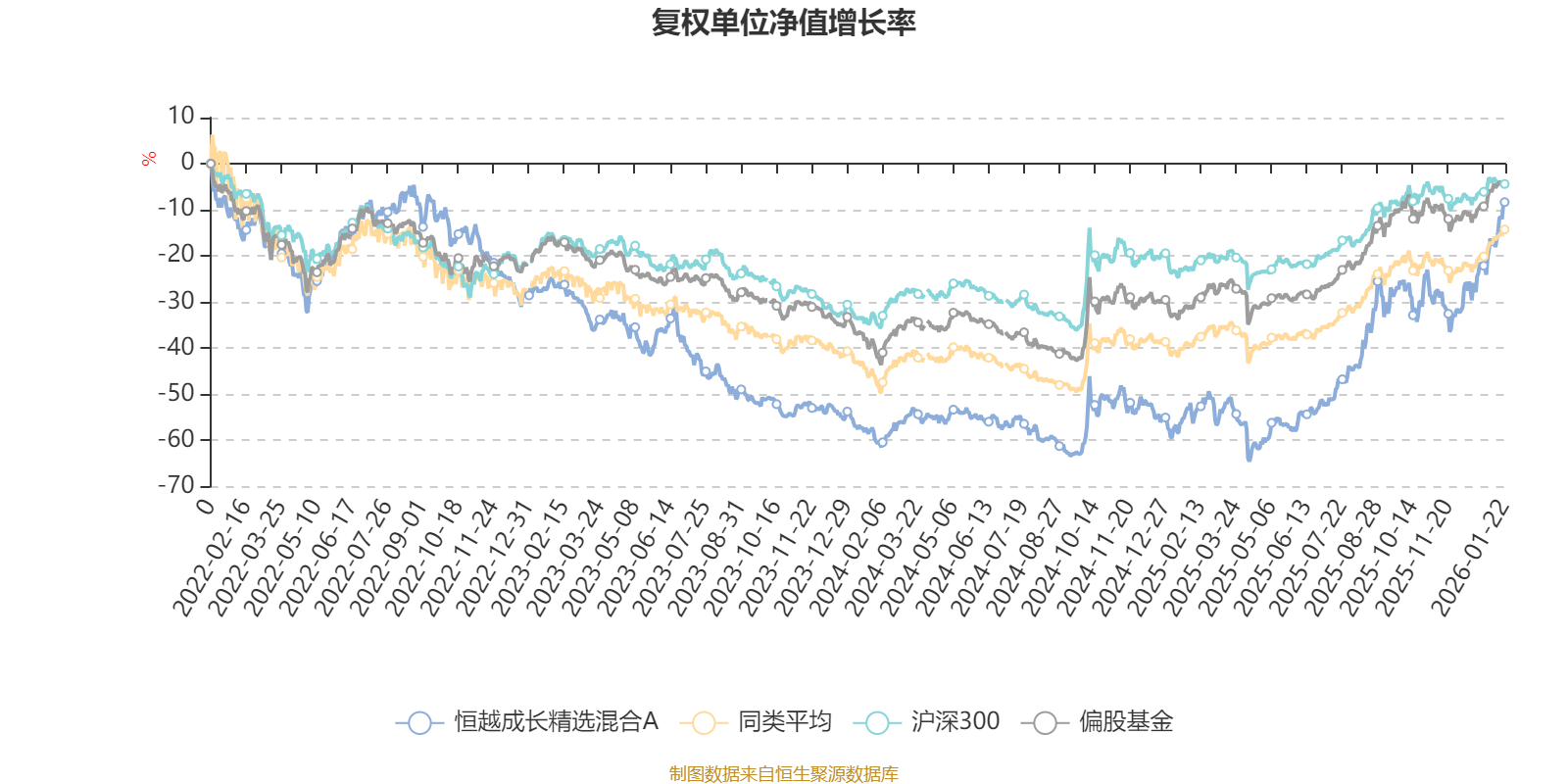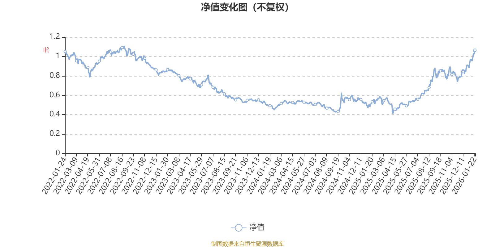 该基金属于偏股混合型基金。截至1月22日,单位净值为1.065元。基金经理是廖明兵,目前管理的2只基金近一年均为正收益。其中,截至1月22日,恒越成长精选混合A近一年复权单位净值增长率最高,达94.34%;恒越内需驱动混合A最低,为0.47%。