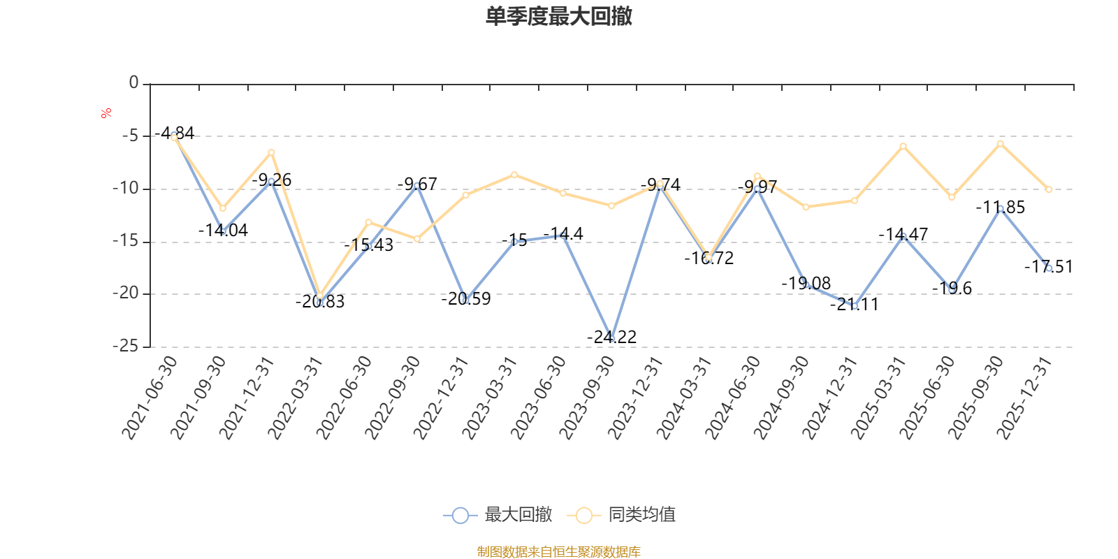 截至1月22日,基金近三年最大回撤为52.89%,同类可比基金排名512/526。单季度最大回撤出现在2023年三季度,为24.22%。