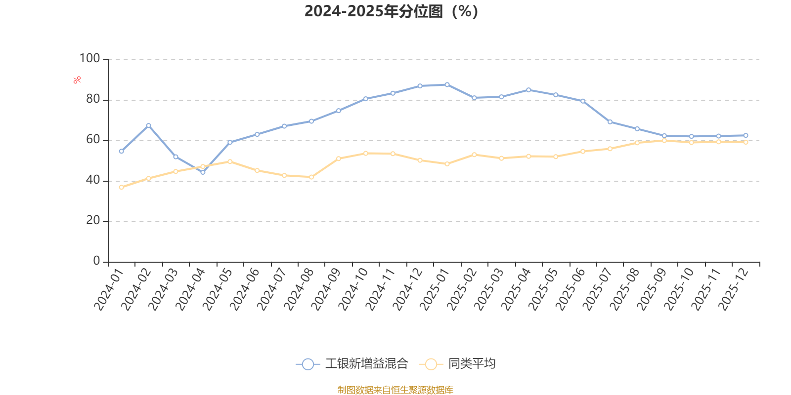 通过所选区间该基金净值增长率分位图,可以观察该基金与同类基金业绩比较情况。图为坐标原点到区间内某时点的净值增长率在同类基金中的分位数。