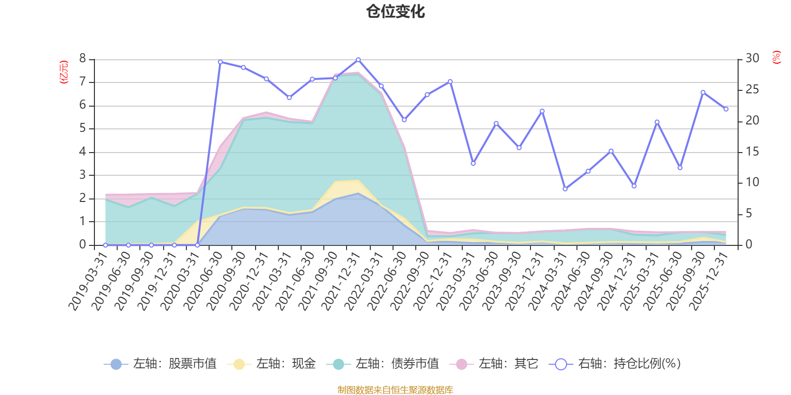 据定期报告数据统计,近三年平均股票仓位为16.24%,同类平均为19.2%。2021年末基金达到29.92%的最高仓位,2024年一季度末最低,为9.08%。