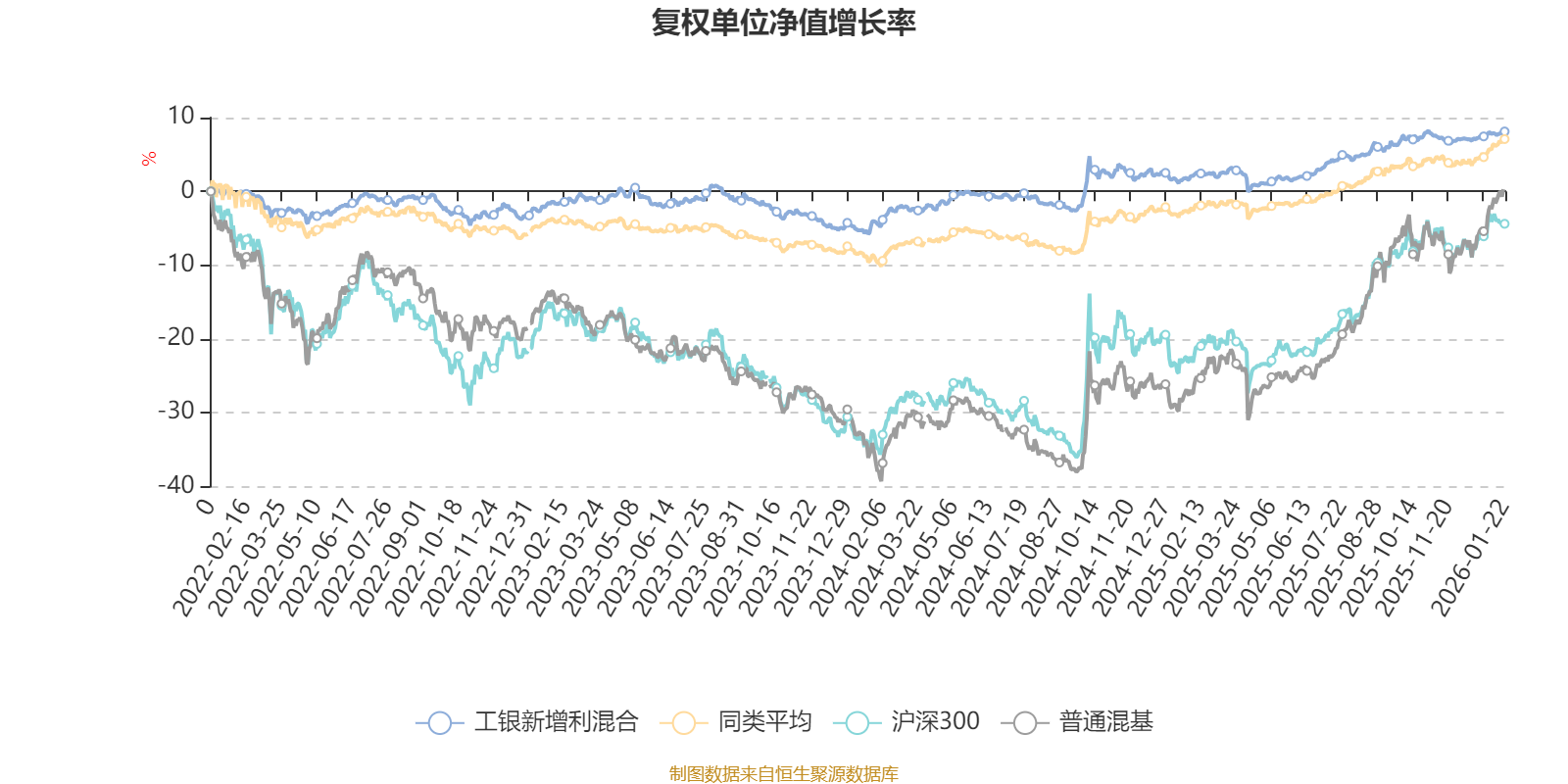 截至1月22日,工银新增利混合近三个月复权单位净值增长率为0.78%,位于同类可比基金518/629;近半年复权单位净值增长率为3.03%,位于同类可比基金430/629;近一年复权单位净值增长率为6.42%,位于同类可比基金388/626;近三年复权单位净值增长率为9.95%,位于同类可比基金349/564。