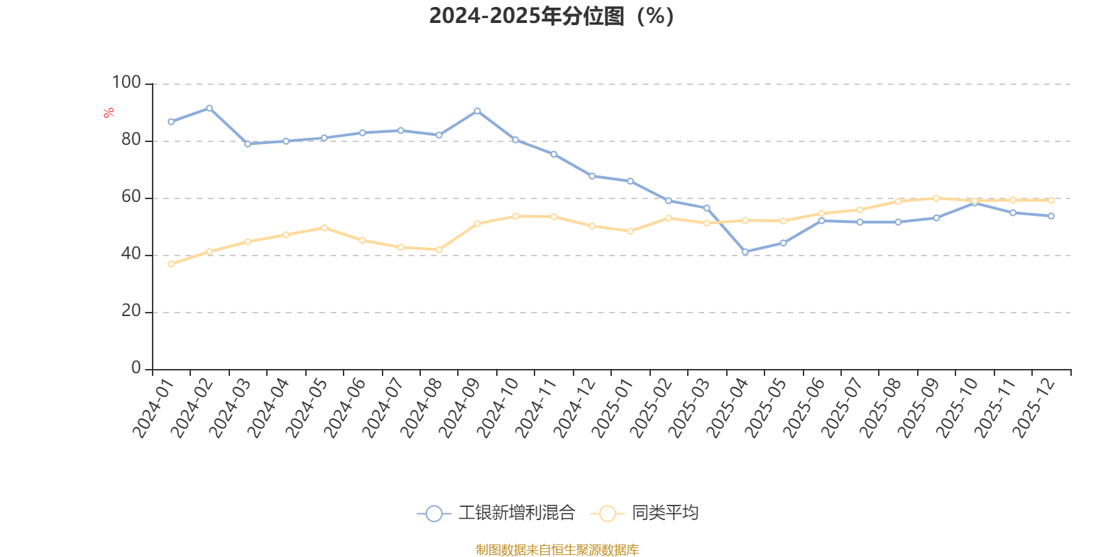 通过所选区间该基金净值增长率分位图,可以观察该基金与同类基金业绩比较情况。图为坐标原点到区间内某时点的净值增长率在同类基金中的分位数。