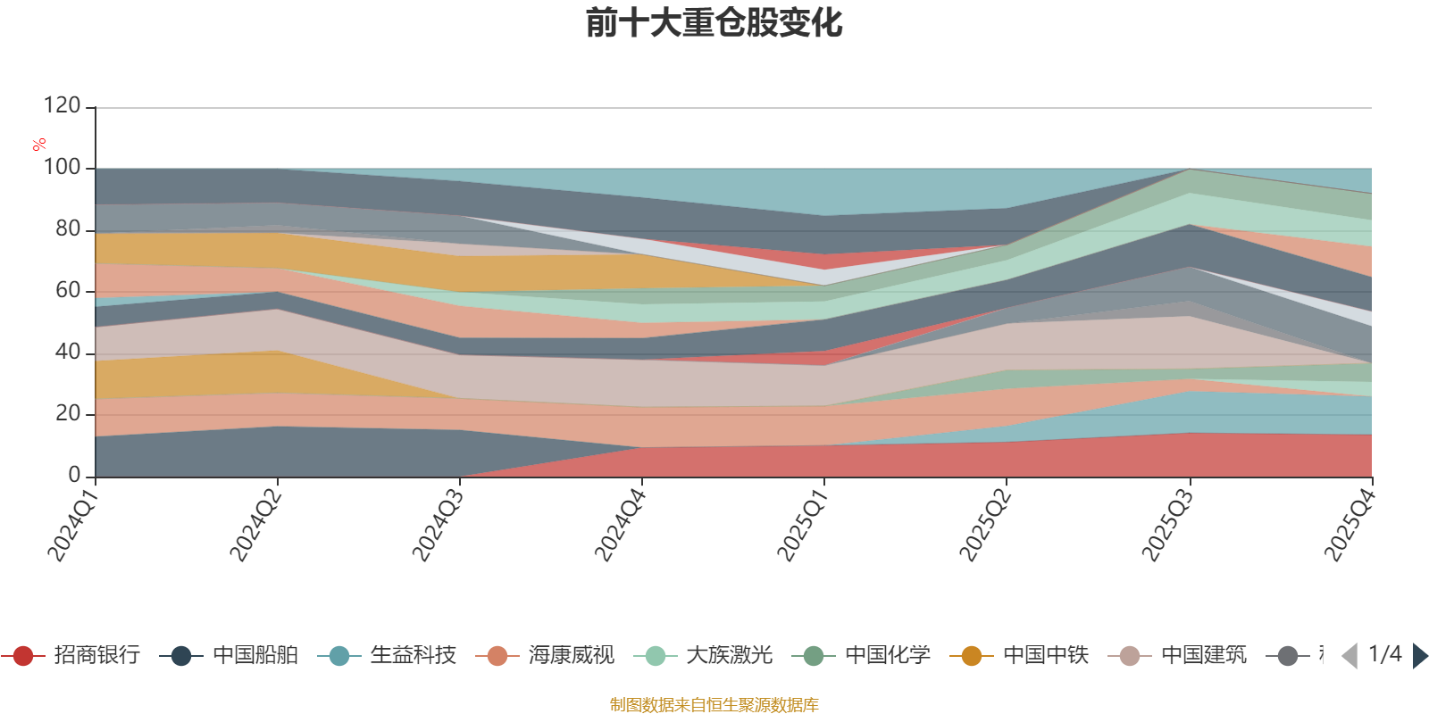 该基金持股集中度较高,近2年前十大重仓股集中度长期超过60%。截至2025年四季度末,基金十大重仓股分别是招商银行、生益科技、紫金矿业、立讯精密、中信证券、宇通客车、分众传媒、中国化学、明阳电气、大族激光。