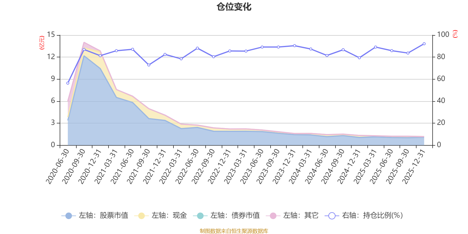 据定期报告数据统计,近三年平均股票仓位为86.67%,同类平均为85.83%。2025年末基金达到92.14%的最高仓位,2020年上半年末最低,为56.38%。