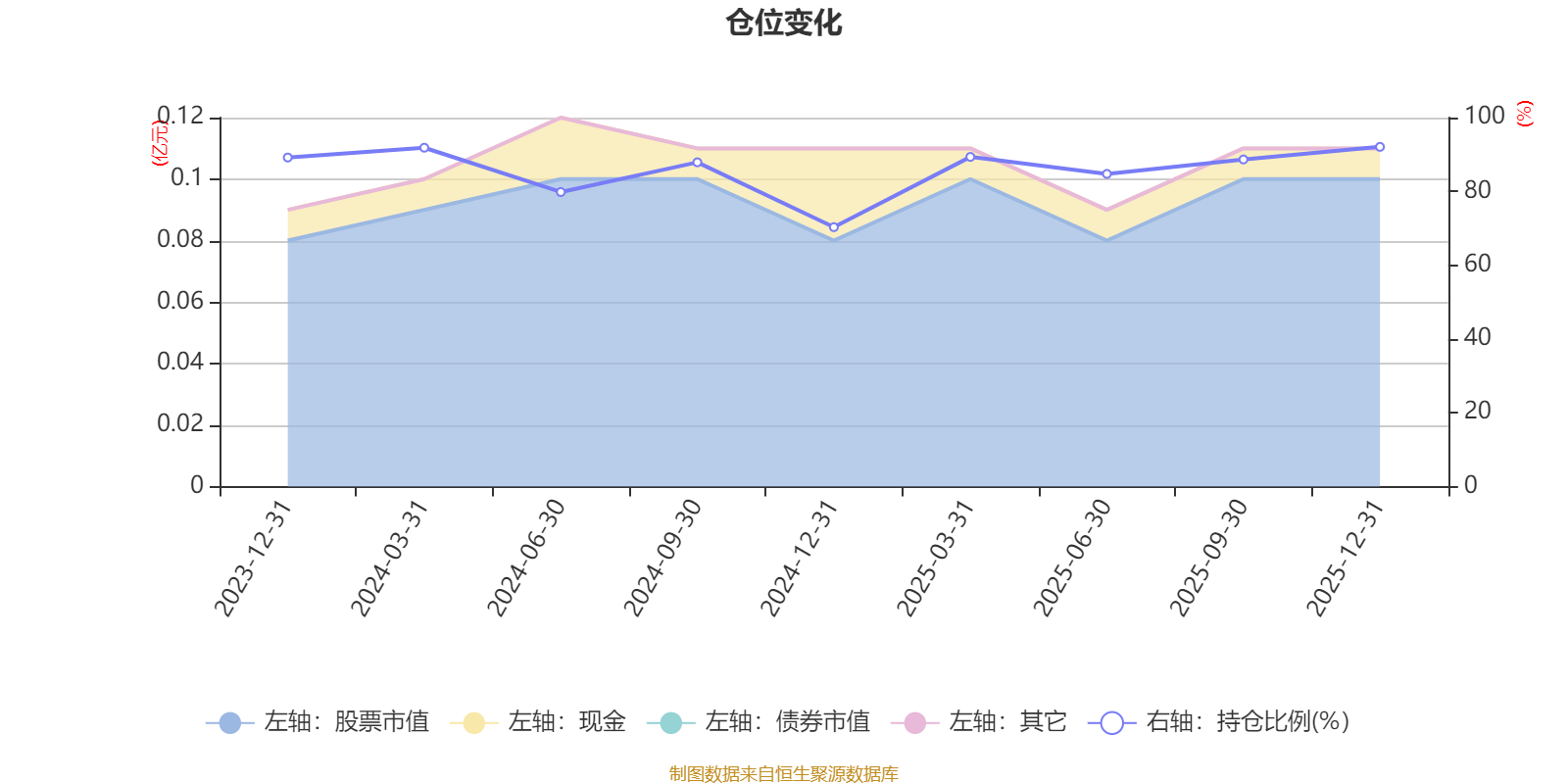 据定期报告数据统计,成立以来平均股票仓位为85.98%,同类平均为87.26%。2025年末基金达到92.07%的最高仓位,2024年末最低,为70.31%。