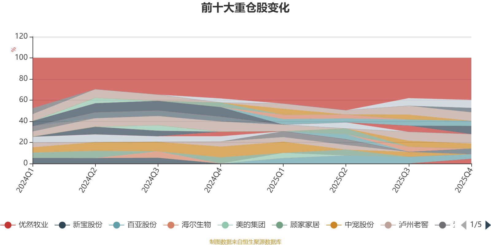 该基金持股集中度较高。截至2025年四季度末,基金十大重仓股分别是赛轮轮胎、海信视像、森麒麟、牧原股份、天康生物、长城汽车、石头科技、优然牧业、百亚股份、星宇股份。