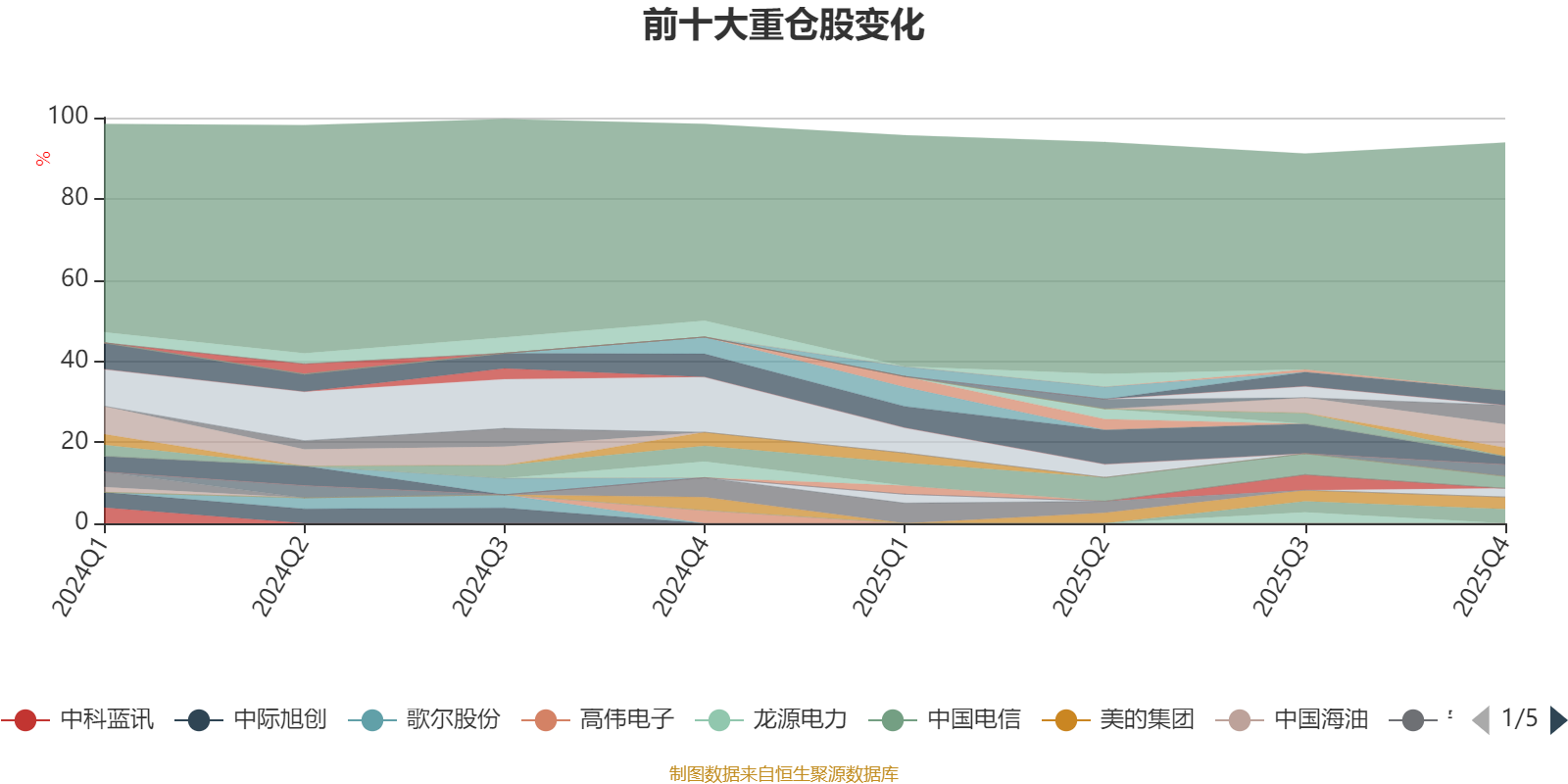 截至2025年四季度末,基金十大重仓股分别是中国平安、中信股份、渝农商行、中国电信、美的集团、腾讯控股、百胜中国、中国银行、工商银行、中国移动。