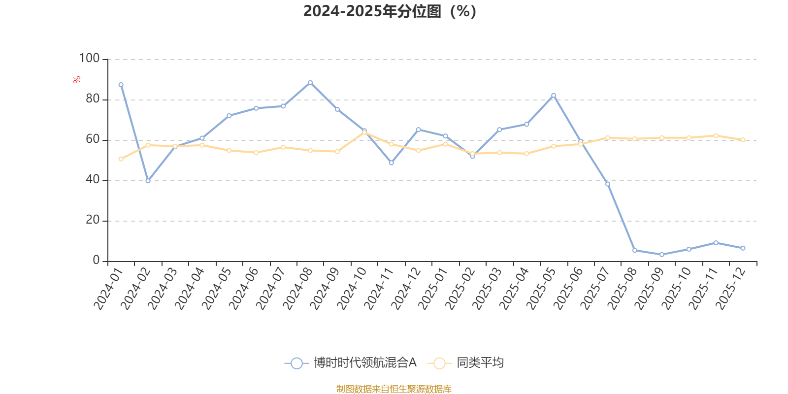 通过所选区间该基金净值增长率分位图,可以观察该基金与同类基金业绩比较情况。图为坐标原点到区间内某时点的净值增长率在同类基金中的分位数。