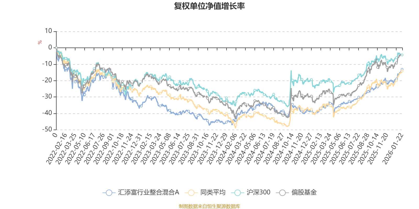 截至1月22日,汇添富行业整合混合A近三个月复权单位净值增长率为13.26%,位于同类可比基金212/689;近半年复权单位净值增长率为24.37%,位于同类可比基金339/689;近一年复权单位净值增长率为42.79%,位于同类可比基金281/673;近三年复权单位净值增长率为26.55%,位于同类可比基金133/396。