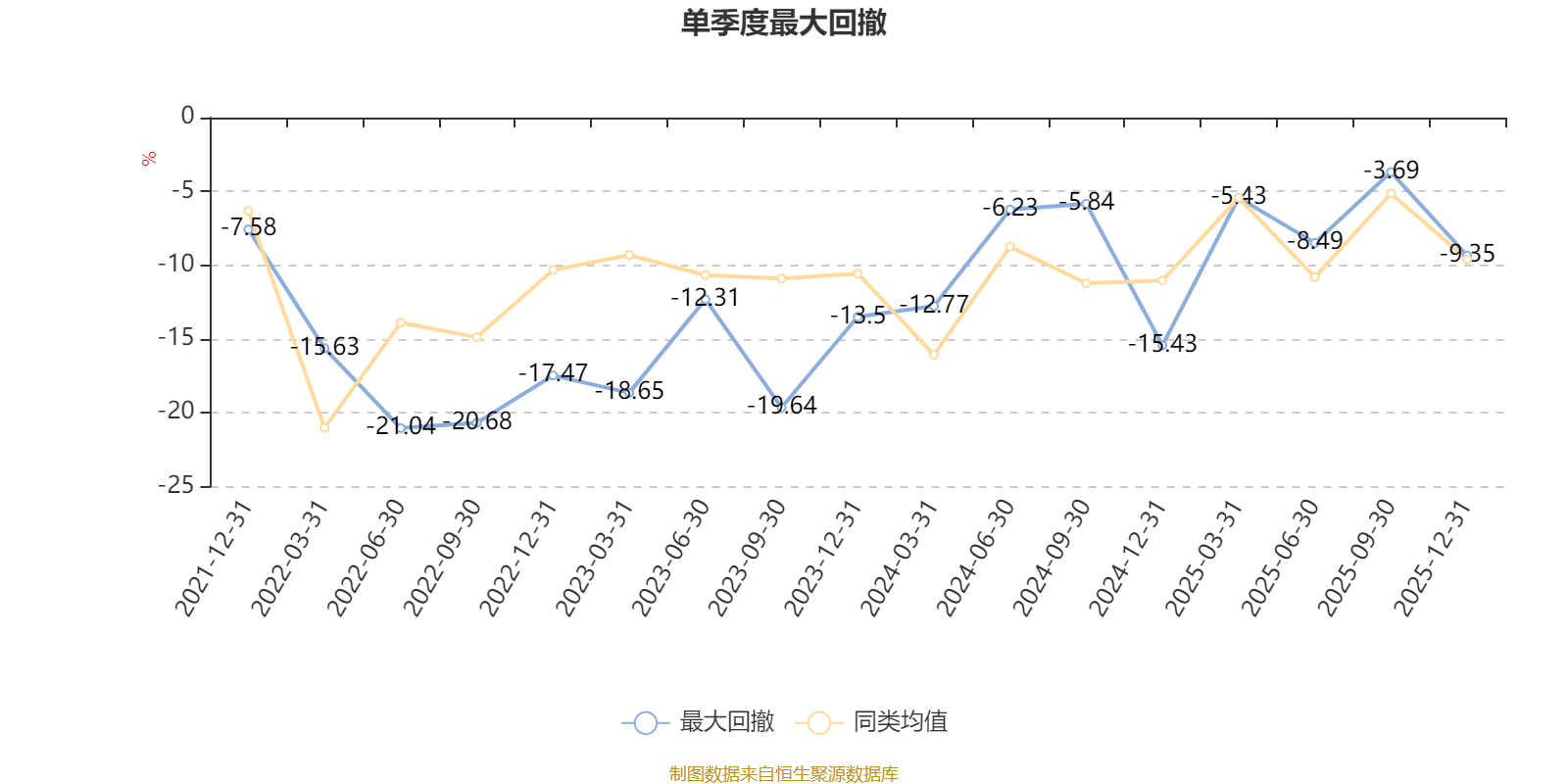 截至1月22日,基金近三年最大回撤为46.03%,同类可比基金排名164/177。单季度最大回撤出现在2022年二季度,为21.04%。