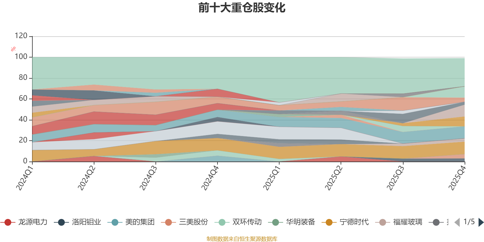该基金持股集中度较高。截至2025年四季度末,基金十大重仓股分别是宁德时代、思源电气、紫金矿业、杰瑞股份、藏格矿业、三美股份、阳光电源、福耀玻璃、洛阳钼业、亿纬锂能。