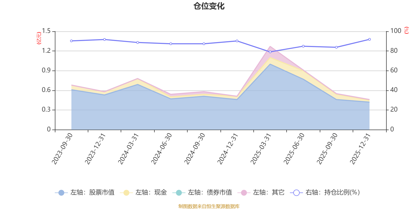 据定期报告数据统计,成立以来平均股票仓位为87.55%,同类平均为84.04%。2025年末基金达到91.88%的最高仓位,2025年一季度末最低,为79.13%。