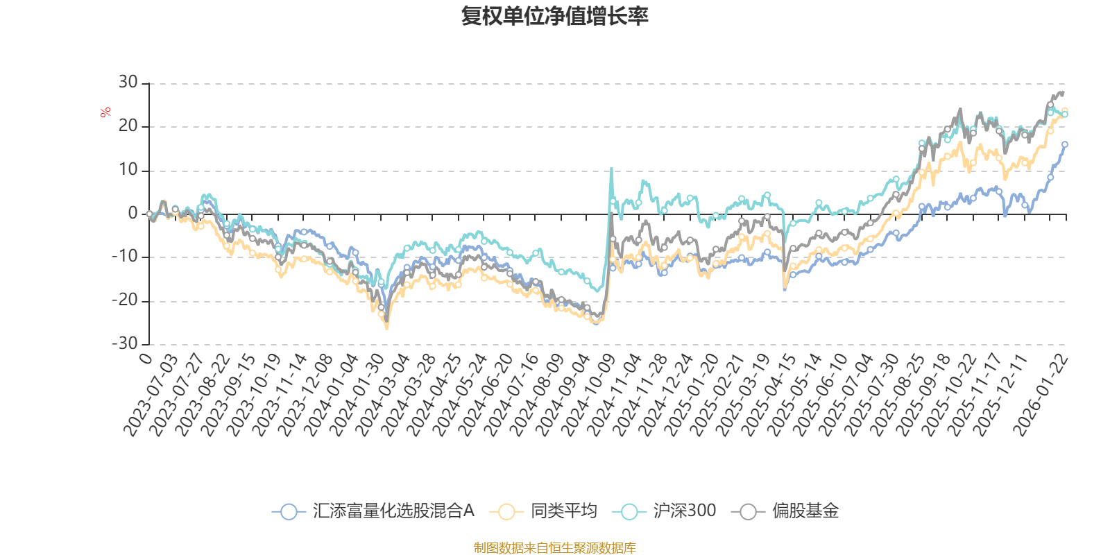 截至1月22日,汇添富量化选股混合A近三个月复权单位净值增长率为11.90%,位于同类可比基金256/689;近半年复权单位净值增长率为21.66%,位于同类可比基金387/689;近一年复权单位净值增长率为32.14%,位于同类可比基金399/673。