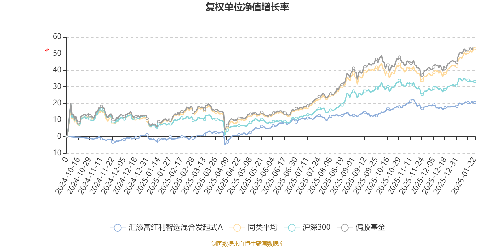 截至1月22日,汇添富红利智选混合发起式A近三个月复权单位净值增长率为3.33%,位于同类可比基金542/689;近半年复权单位净值增长率为7.33%,位于同类可比基金593/689;近一年复权单位净值增长率为23.18%,位于同类可比基金529/673。
