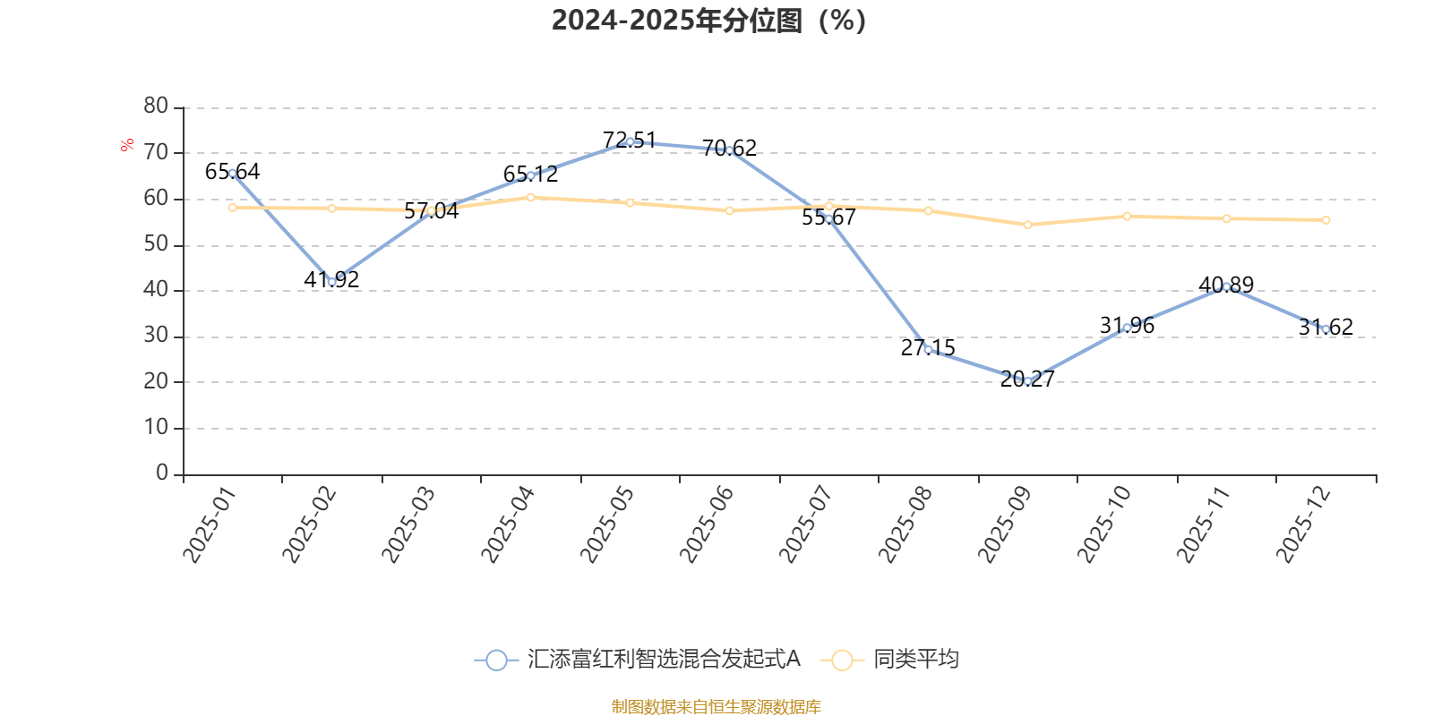 通过所选区间该基金净值增长率分位图,可以观察该基金与同类基金业绩比较情况。图为坐标原点到区间内某时点的净值增长率在同类基金中的分位数。
