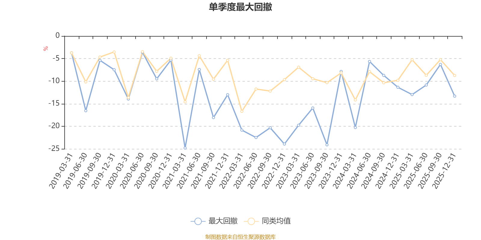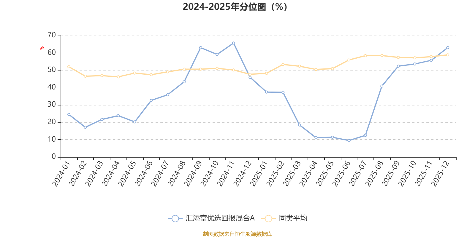 通过所选区间该基金净值增长率分位图,可以观察该基金与同类基金业绩比较情况。图为坐标原点到区间内某时点的净值增长率在同类基金中的分位数。