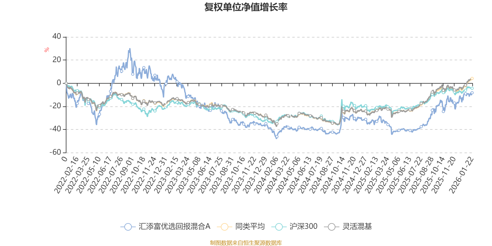 截至1月22日,汇添富优选回报混合A近三个月复权单位净值增长率为12.68%,位于同类可比基金410/1286;近半年复权单位净值增长率为46.94%,位于同类可比基金180/1286;近一年复权单位净值增长率为34.62%,位于同类可比基金602/1286;近三年复权单位净值增长率为-12.94%,位于同类可比基金1168/1286。