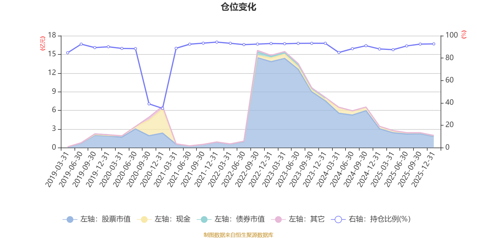据定期报告数据统计,近三年平均股票仓位为90.72%,同类平均为72.57%。2021年末基金达到94.28%的最高仓位,2020年末最低,为35.08%。