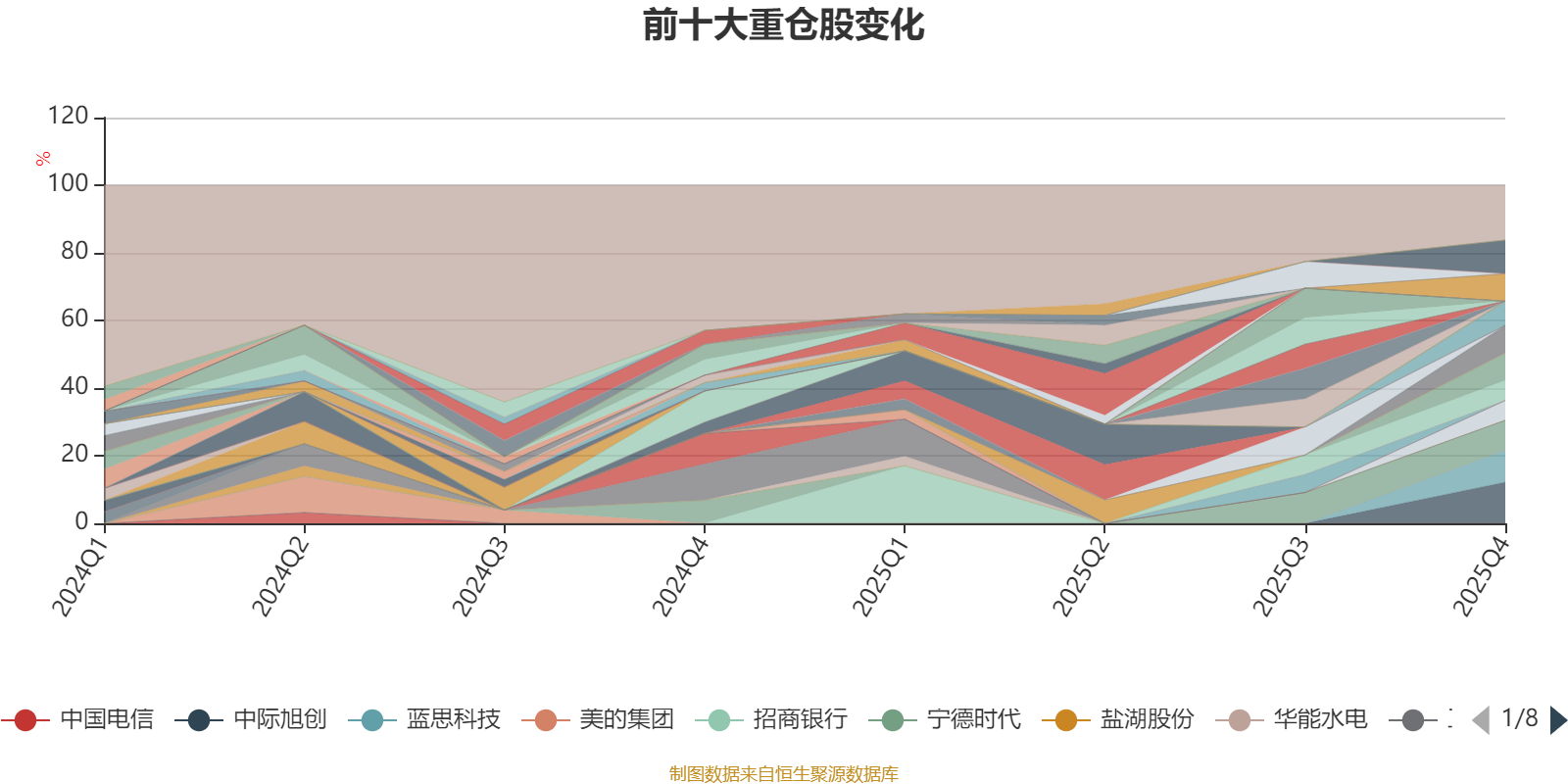 截至2025年四季度末,基金十大重仓股分别是中际旭创、拓荆科技、蓝思科技、宁德时代、同花顺、生益电子、大全能源、信维通信、佰维存储、复旦微电。