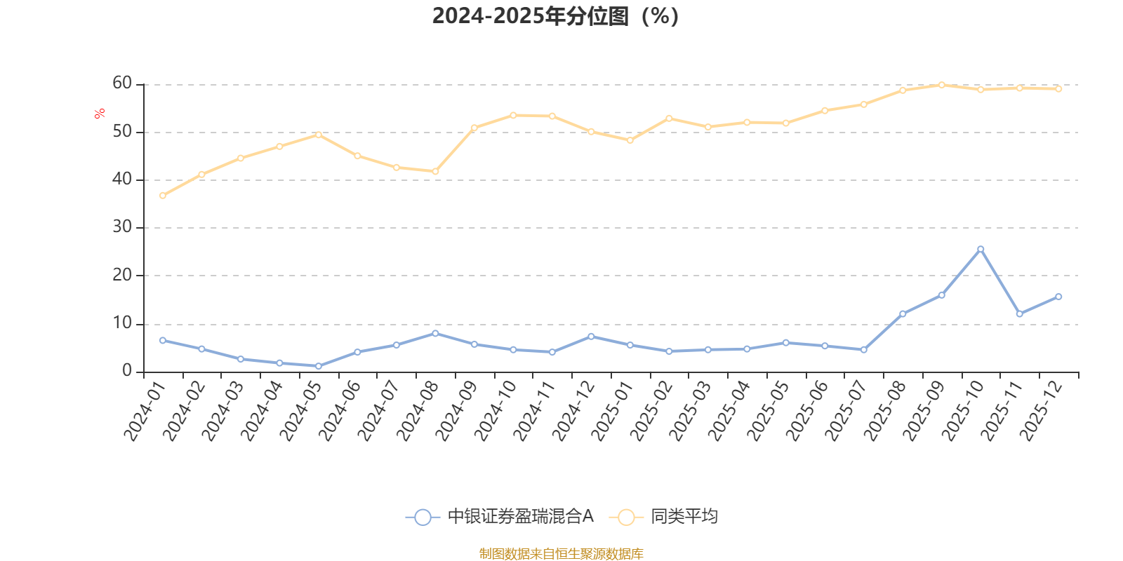 通过所选区间该基金净值增长率分位图,可以观察该基金与同类基金业绩比较情况。图为坐标原点到区间内某时点的净值增长率在同类基金中的分位数。