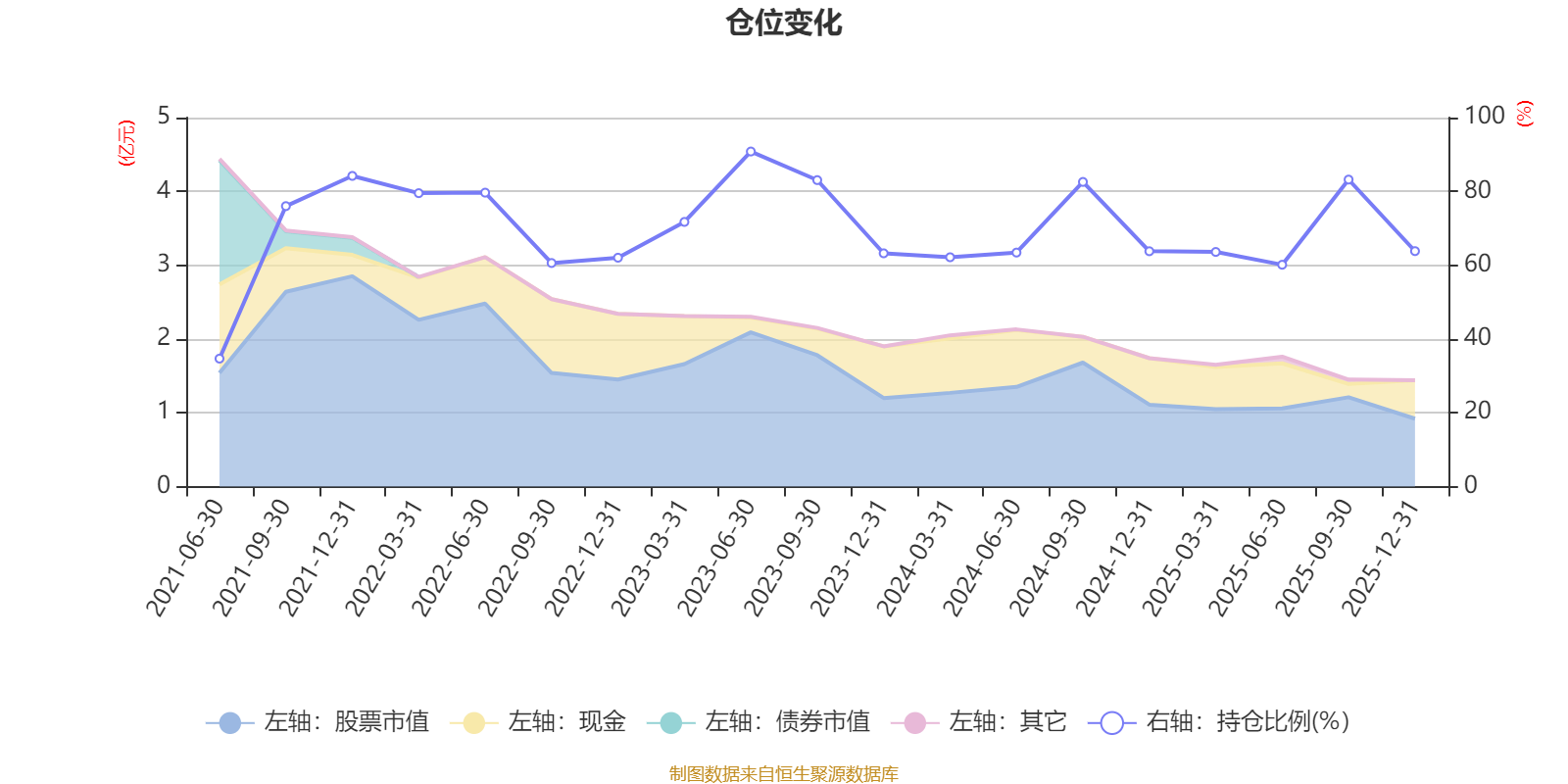 据定期报告数据统计,近三年平均股票仓位为70.96%,同类平均为85.83%。2023年上半年末基金达到90.81%的最高仓位,2021年上半年末最低,为34.68%。