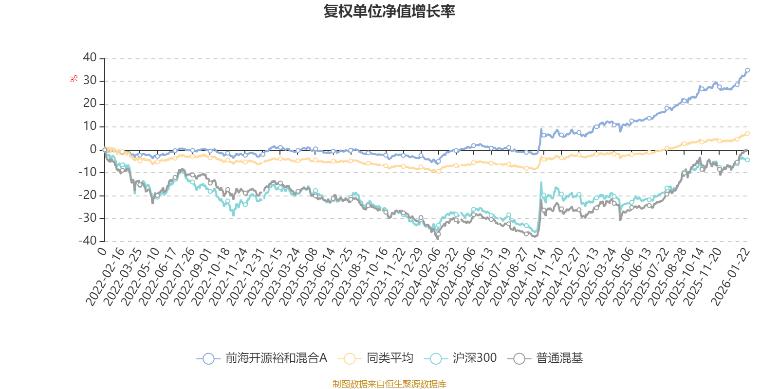 截至1月22日,前海开源裕和混合A近三个月复权单位净值增长率为6.98%,位于同类可比基金34/629;近半年复权单位净值增长率为14.02%,位于同类可比基金33/629;近一年复权单位净值增长率为25.32%,位于同类可比基金26/626;近三年复权单位净值增长率为33.37%,位于同类可比基金19/564。