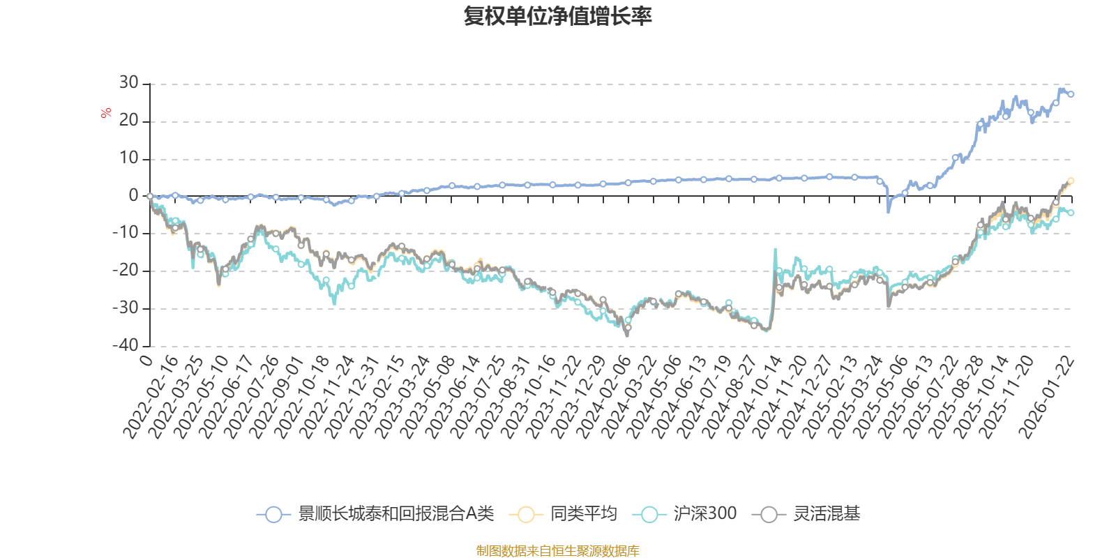 截至1月22日,景顺长城泰和回报混合A类近三个月复权单位净值增长率为3.52%,位于同类可比基金940/1286;近半年复权单位净值增长率为15.32%,位于同类可比基金809/1286;近一年复权单位净值增长率为21.34%,位于同类可比基金892/1286;近三年复权单位净值增长率为26.08%,位于同类可比基金439/1286。