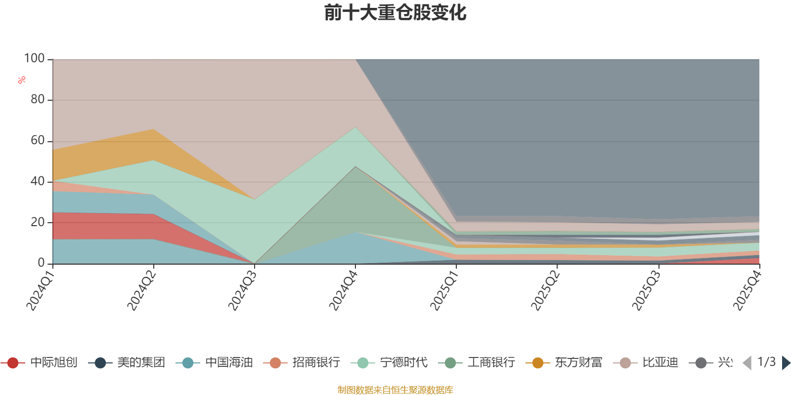 截至2025年四季度末,基金十大重仓股分别是宁德时代、贵州茅台、中国平安、中际旭创、紫金矿业、招商银行、新易盛、美的集团、兴业银行、长江电力。