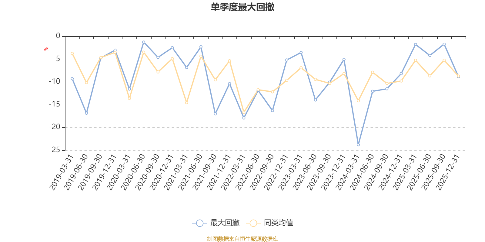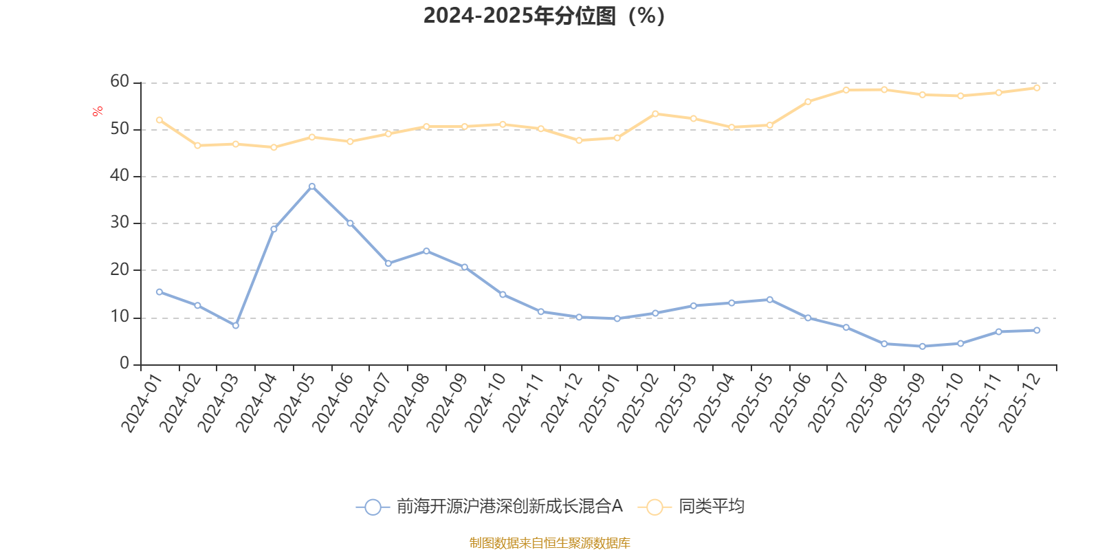 通过所选区间该基金净值增长率分位图,可以观察该基金与同类基金业绩比较情况。图为坐标原点到区间内某时点的净值增长率在同类基金中的分位数。
