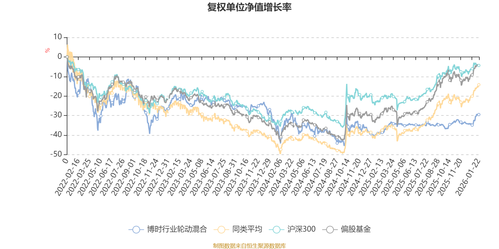 截至1月22日,博时行业轮动混合近三个月复权单位净值增长率为7.00%,位于同类可比基金412/621;近半年复权单位净值增长率为5.56%,位于同类可比基金562/621;近一年复权单位净值增长率为15.06%,位于同类可比基金566/613;近三年复权单位净值增长率为-11.99%,位于同类可比基金487/535。