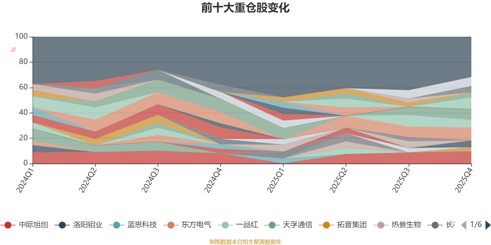 该基金持股集中度较高。截至2025年四季度末,基金十大重仓股分别是新易盛、中际旭创、东山精密、寒武纪、新泉股份、工业富联、金盘科技、斯菱智驱、源杰科技、拓普集团。