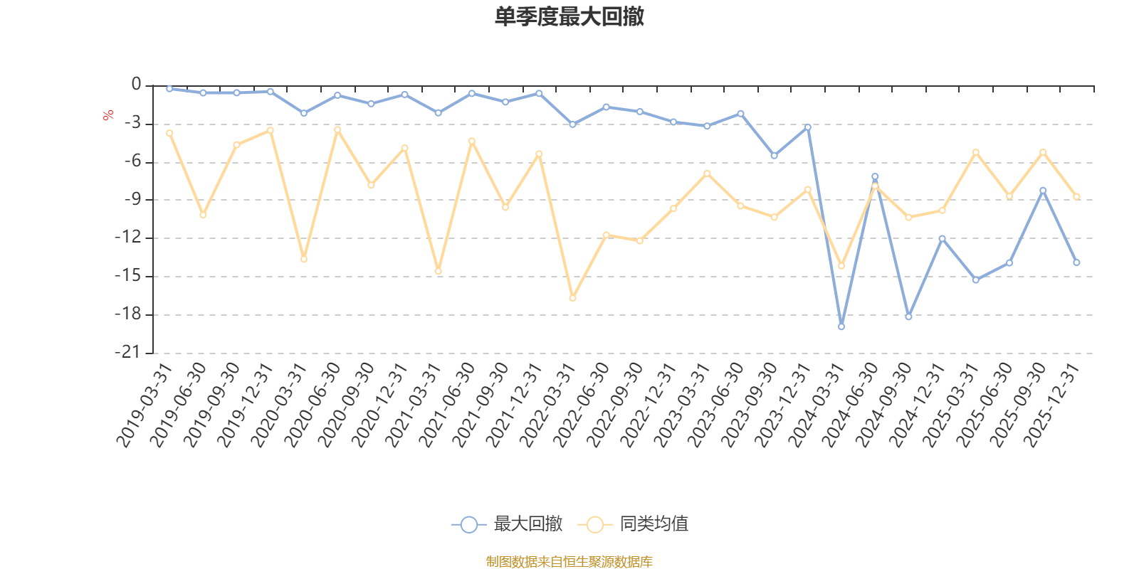 截至1月22日,基金近三年最大回撤为26.79%,同类可比基金排名442/1264。单季度最大回撤出现在2024年一季度,为18.92%。
