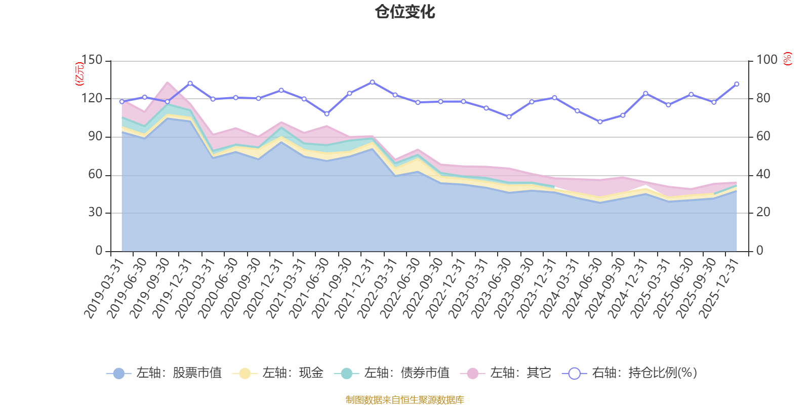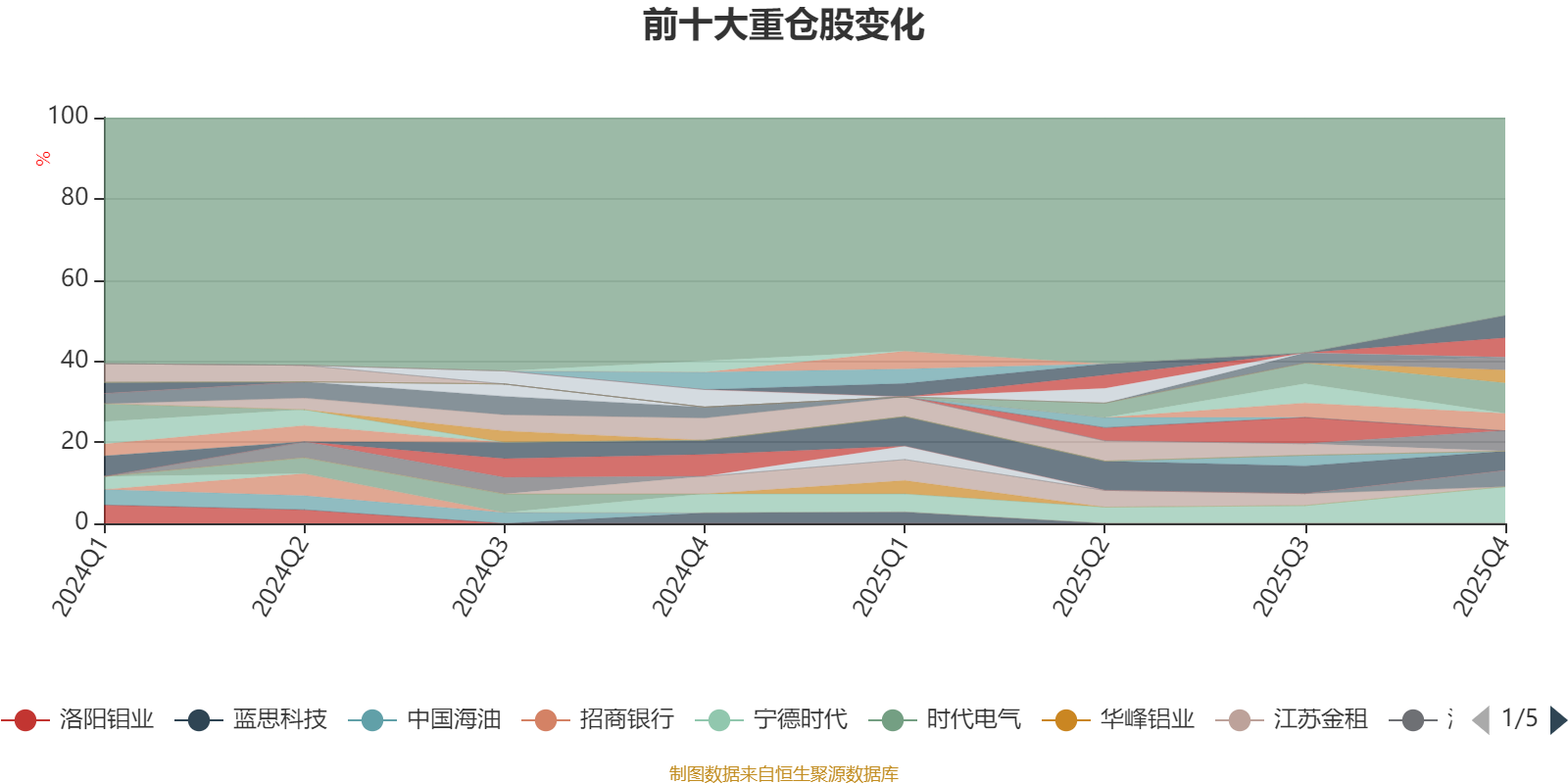 截至2025年四季度末,基金十大重仓股分别是宁德时代、中国平安、璞泰来、阳光电源、中国太保、紫金矿业、世纪华通、利通科技、雅化集团、苑东生物。