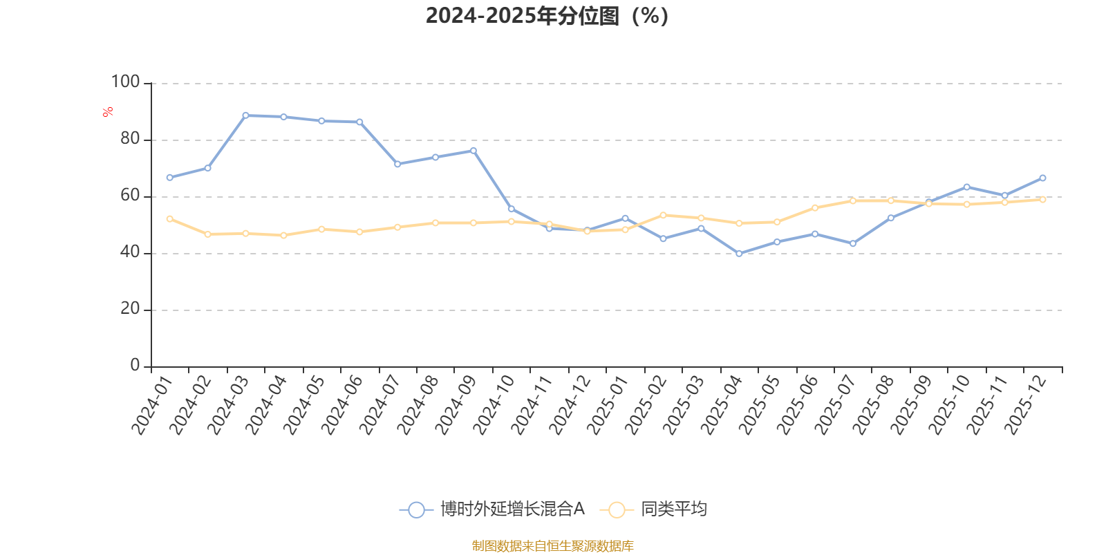 通过所选区间该基金净值增长率分位图,可以观察该基金与同类基金业绩比较情况。图为坐标原点到区间内某时点的净值增长率在同类基金中的分位数。