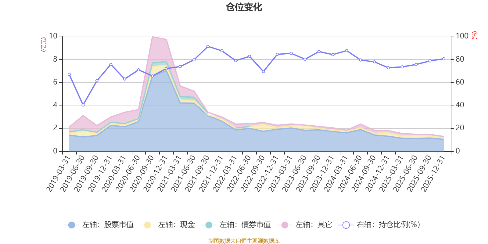 据定期报告数据统计,近三年平均股票仓位为80.35%,同类平均为72.57%。2021年三季度末基金达到91.46%的最高仓位,2019年上半年末最低,为40.4%。