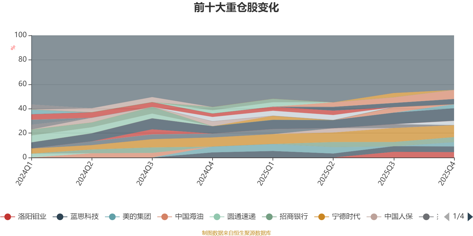 截至2025年四季度末,基金十大重仓股分别是紫金矿业、宁德时代、中国平安、蓝思科技、洛阳钼业、睿创微纳、招商银行、美的集团、藏格矿业、华泰证券。