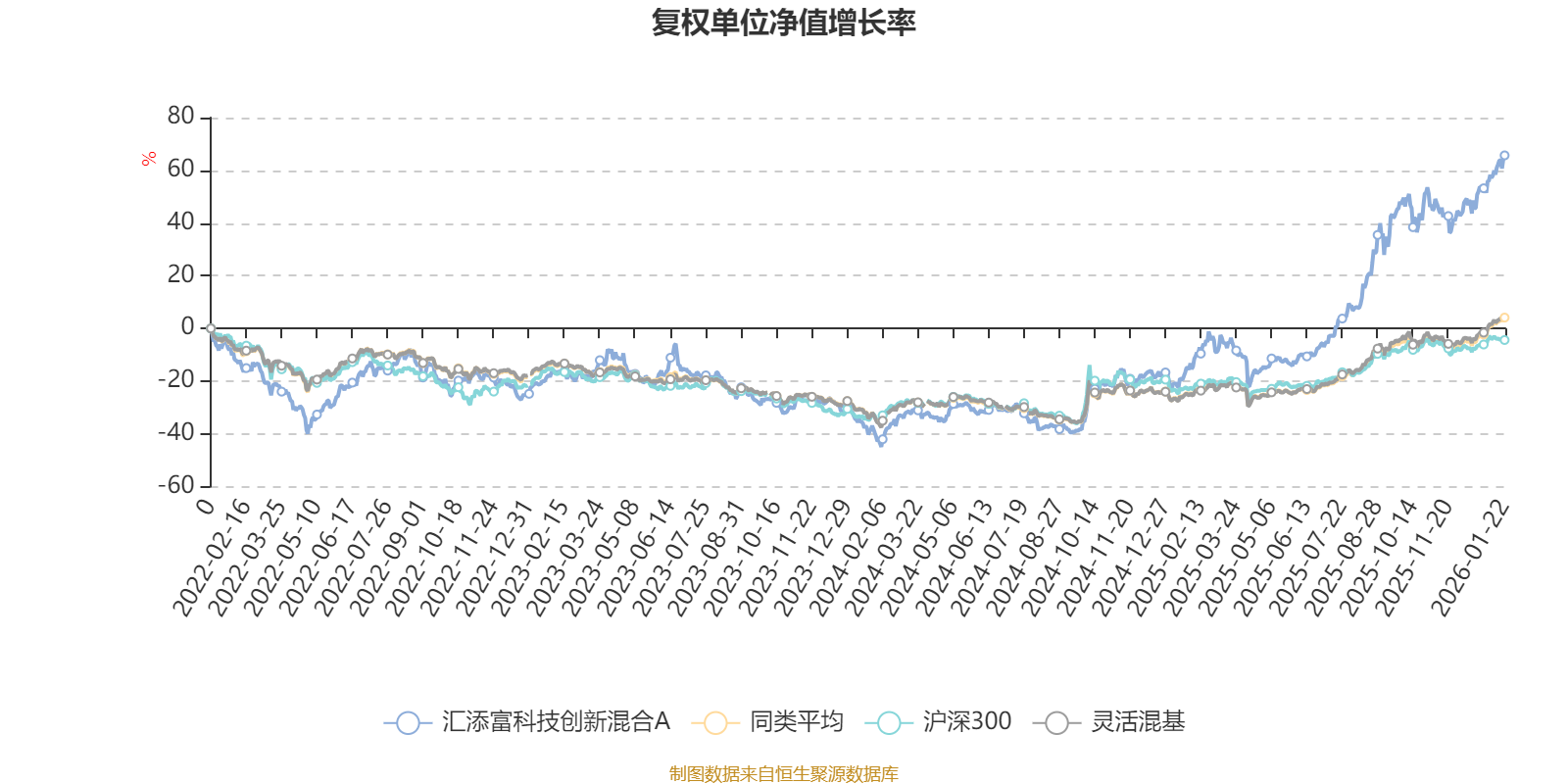截至1月22日,汇添富科技创新混合A近三个月复权单位净值增长率为16.29%,位于同类可比基金236/1286;近半年复权单位净值增长率为59.68%,位于同类可比基金91/1286;近一年复权单位净值增长率为94.54%,位于同类可比基金26/1286;近三年复权单位净值增长率为102.21%,位于同类可比基金31/1286。