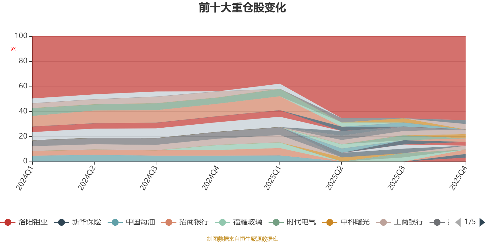 截至2025年四季度末,基金十大重仓股分别是中国平安、紫金矿业、招商银行、兴业银行、洛阳钼业、生益科技、工商银行、巨化股份、三一重工、新华保险。