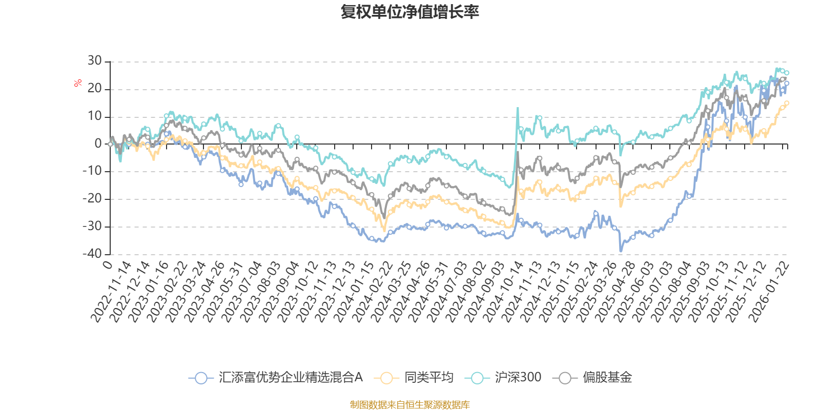 截至1月22日,汇添富优势企业精选混合A近三个月复权单位净值增长率为10.01%,位于同类可比基金316/689;近半年复权单位净值增长率为55.15%,位于同类可比基金53/689;近一年复权单位净值增长率为74.27%,位于同类可比基金45/673;近三年复权单位净值增长率为16.55%,位于同类可比基金194/396。
