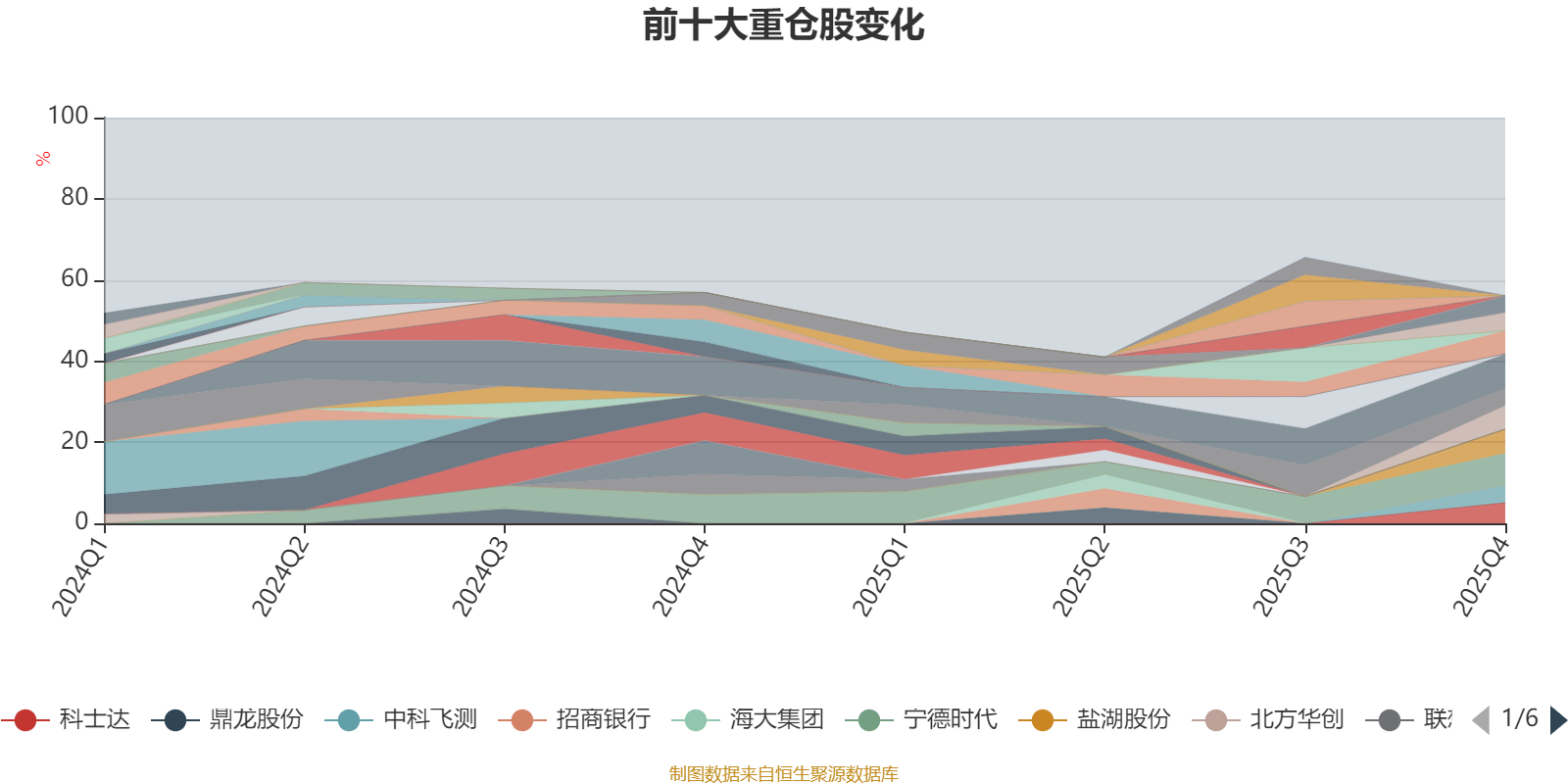 截至2025年四季度末,基金十大重仓股分别是腾讯控股、宁德时代、盐湖股份、博迁新材、三环集团、科士达、阳光电源、中科飞测、紫金矿业、东吴证券。