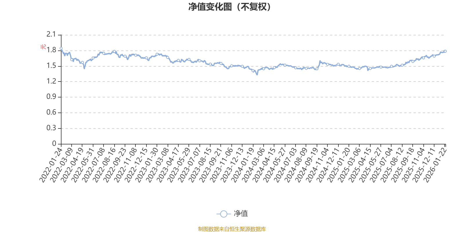 该基金属于灵活配置型基金。截至1月22日,单位净值为1.784元。基金经理是赵鹏飞,目前管理的4只基金近一年均为正收益。其中,截至1月22日,汇添富悦享两年持有混合近一年复权单位净值增长率最高,达29.73%;汇添富稳健增益一年持有混合A最低,为6.61%。