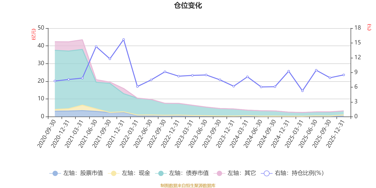 据定期报告数据统计,近三年平均股票仓位为7.6%,同类平均为19.2%。2021年末基金达到15.7%的最高仓位,2025年一季度末最低,为5.26%。