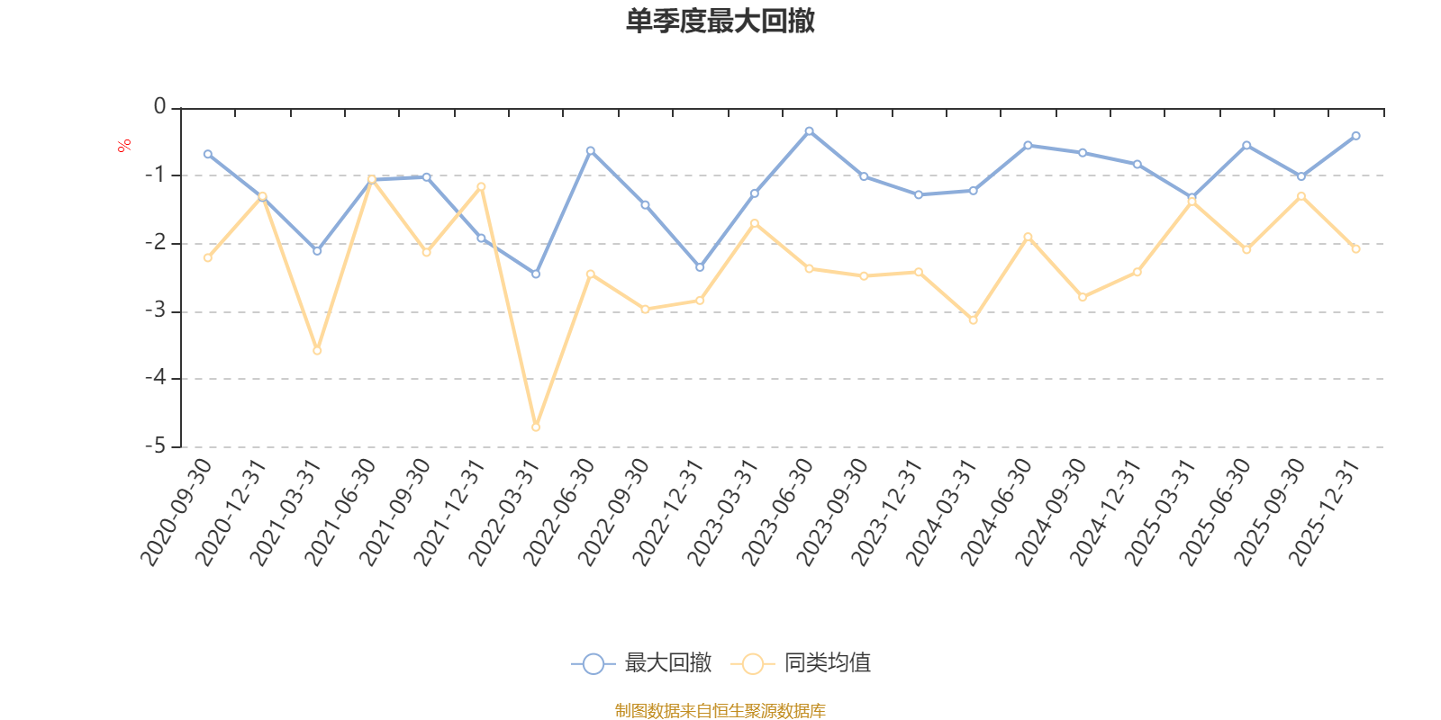通过所选区间该基金净值增长率分位图,可以观察该基金与同类基金业绩比较情况。图为坐标原点到区间内某时点的净值增长率在同类基金中的分位数。