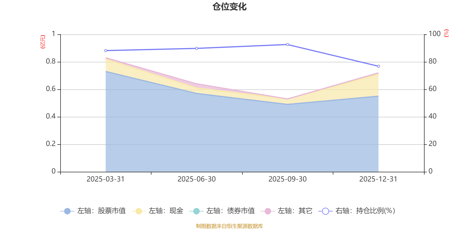 据定期报告数据统计,成立以来平均股票仓位为86.83%,同类平均为84.04%。2025年三季度末基金达到92.58%的最高仓位,2025年末最低,为76.8%。