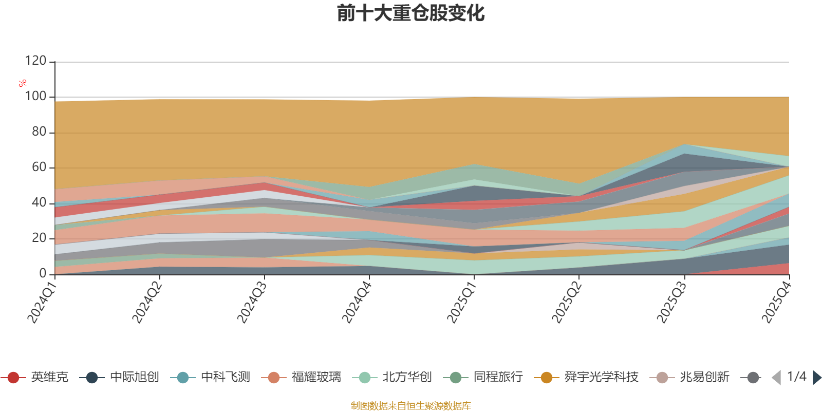 该基金持股集中度较高。截至2025年四季度末,基金十大重仓股分别是中际旭创、新易盛、沪电股份、生益科技、北方华创、英维克、深南电路、工业富联、中科飞测、思源电气。