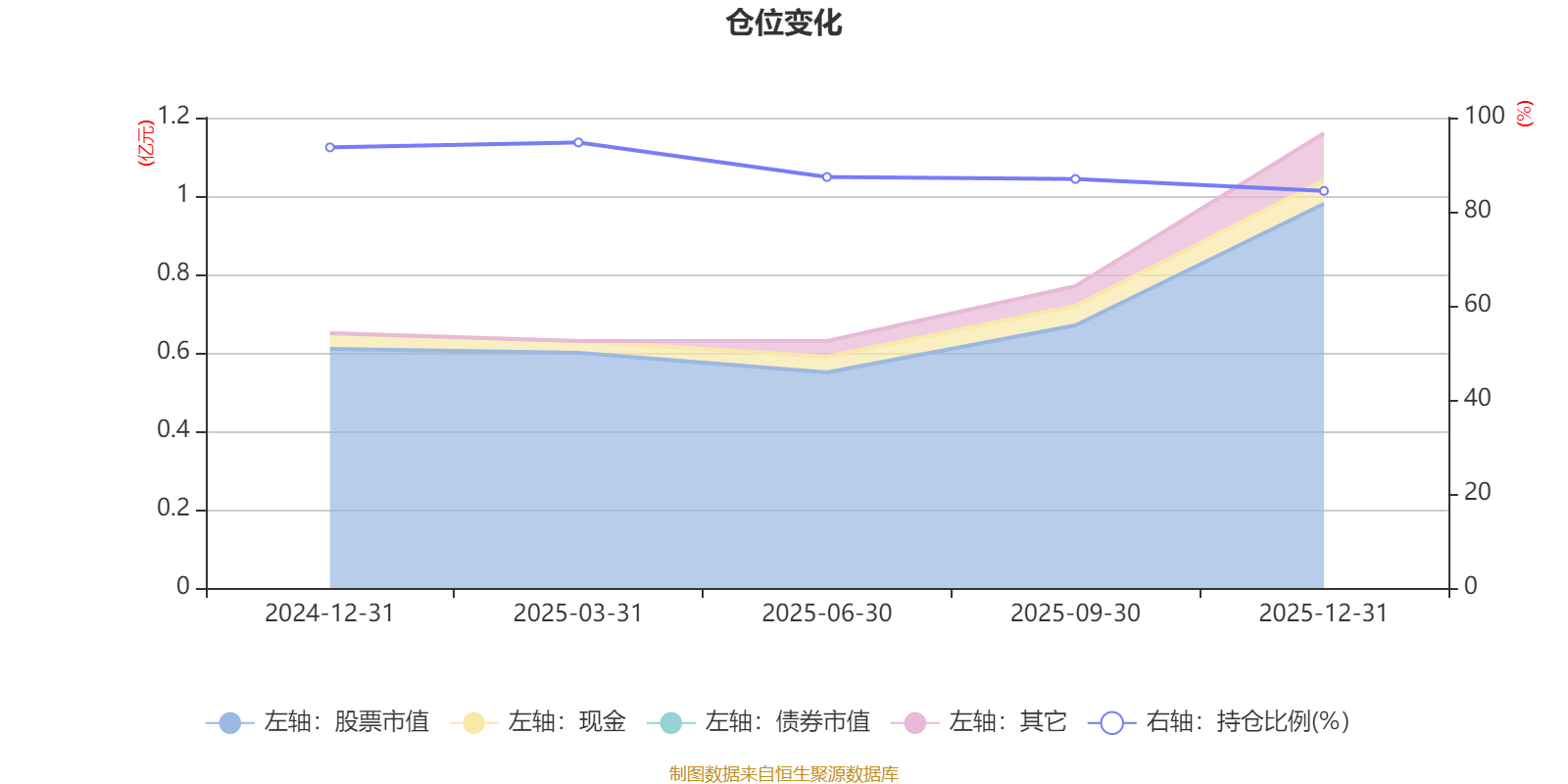 据定期报告数据统计,成立以来平均股票仓位为89.43%,同类平均为84.04%。2025年一季度末基金达到94.71%的最高仓位,2025年末最低,为84.42%。