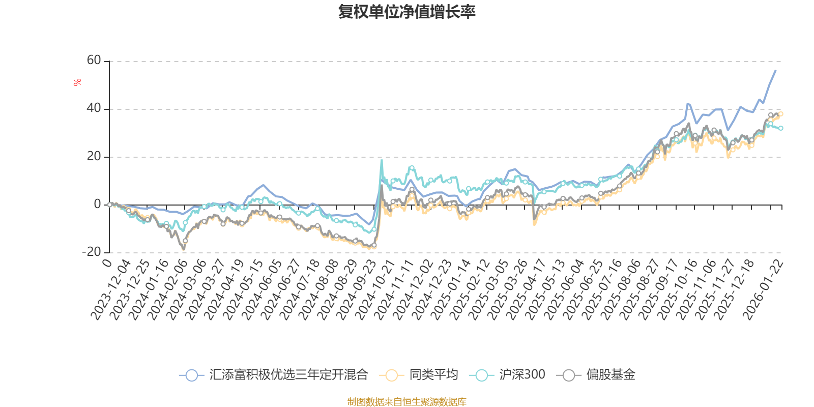 截至1月16日,汇添富积极优选三年定开混合近三个月复权单位净值增长率为10.41%,位于同类可比基金272/621;近半年复权单位净值增长率为39.52%,位于同类可比基金120/621;近一年复权单位净值增长率为57.38%,位于同类可比基金134/613。